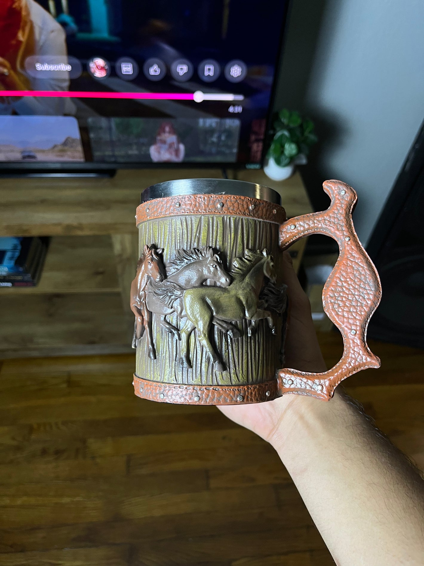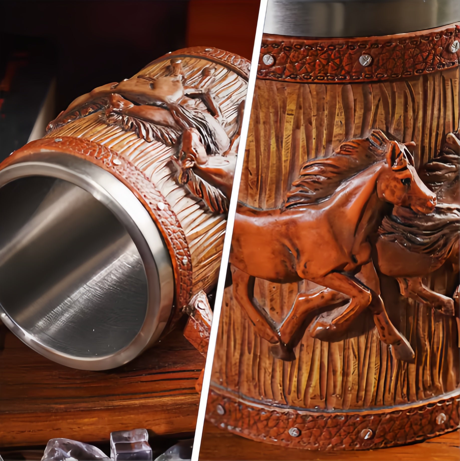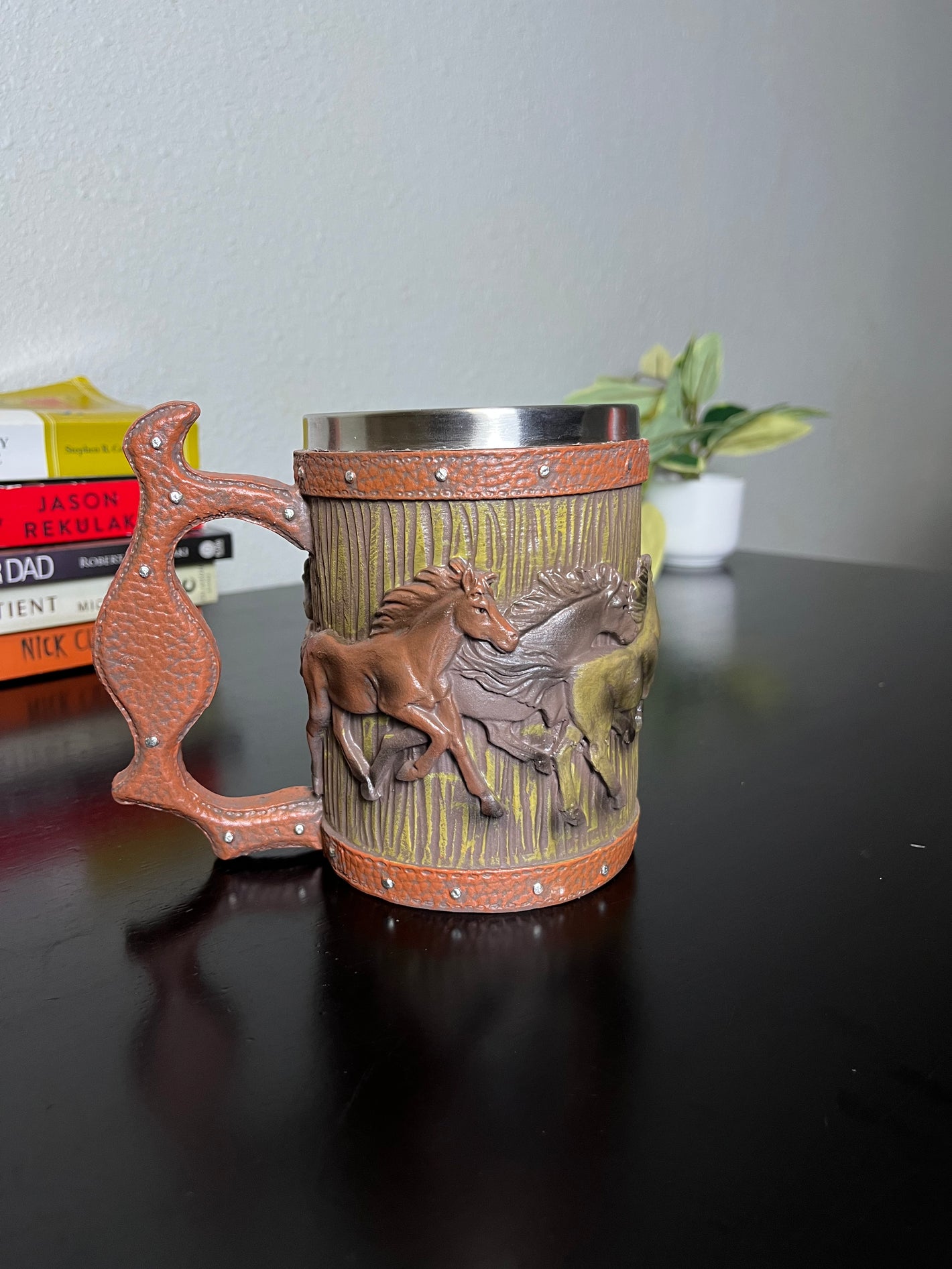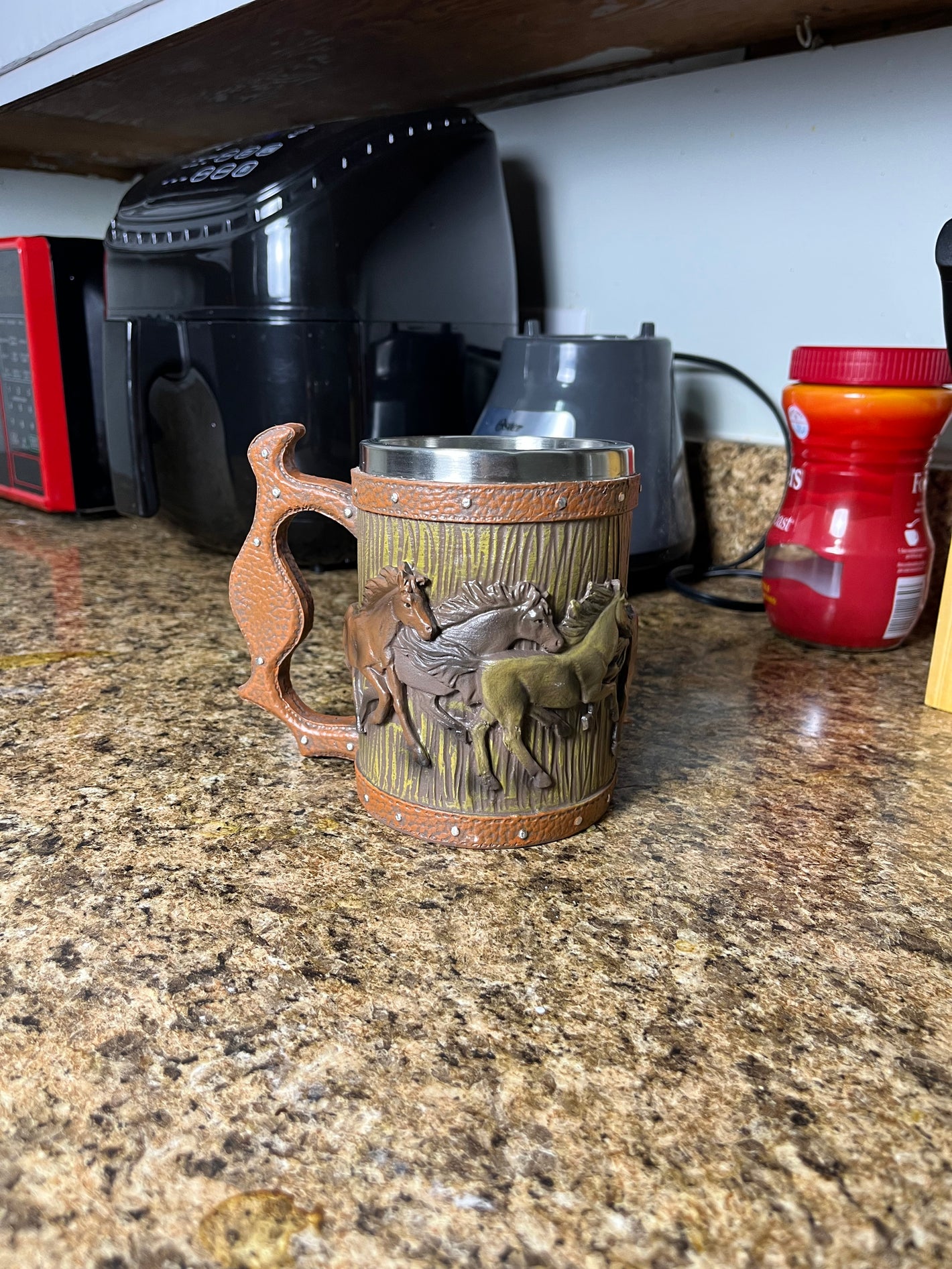 The detail on the horses blew me away. It doesn’t feel cheap at all, the handle is sturdy, and the inside stainless steel keeps my coffee hot longer. I’ll definitely be ordering another one for my dad.